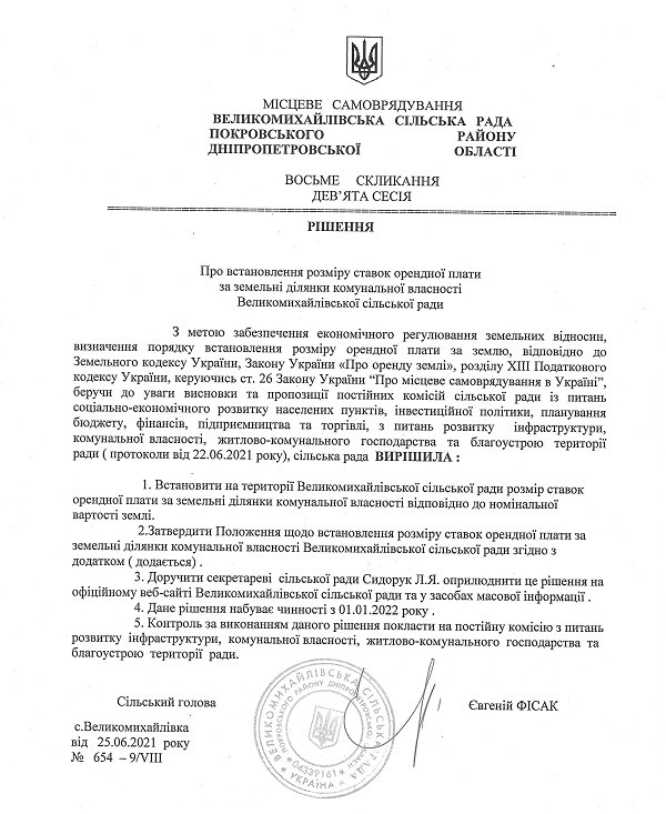 Про встановлення ставок та пільг зі сплати земельного податку на 2022 рік на території Великомихайлівської сільської ради