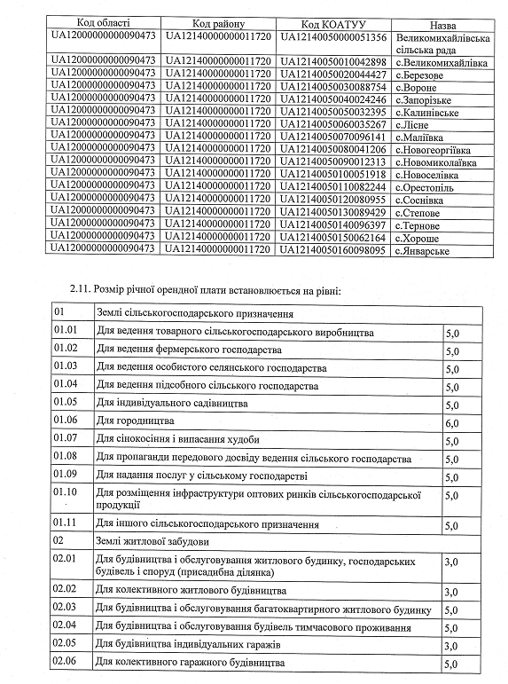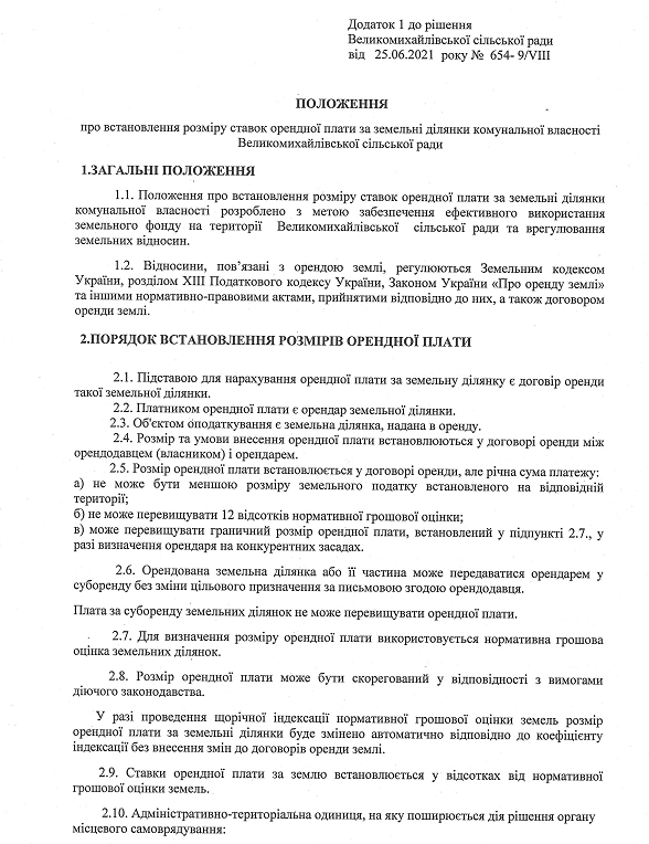 Про встановлення розміру ставок орендної плати за земельні ділянки комунальної власності Великомихайлівської сільської ради