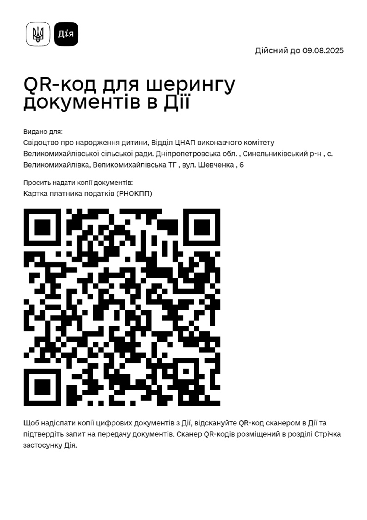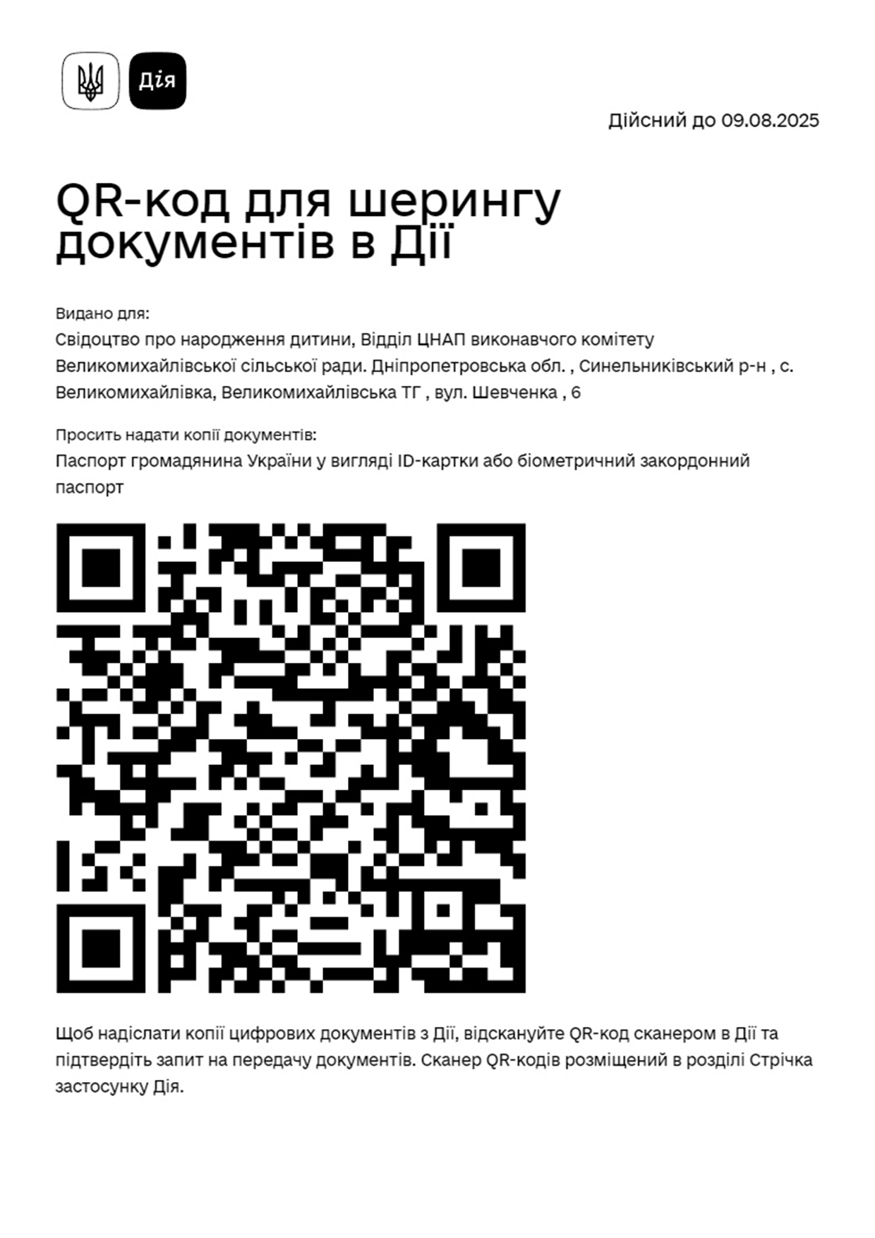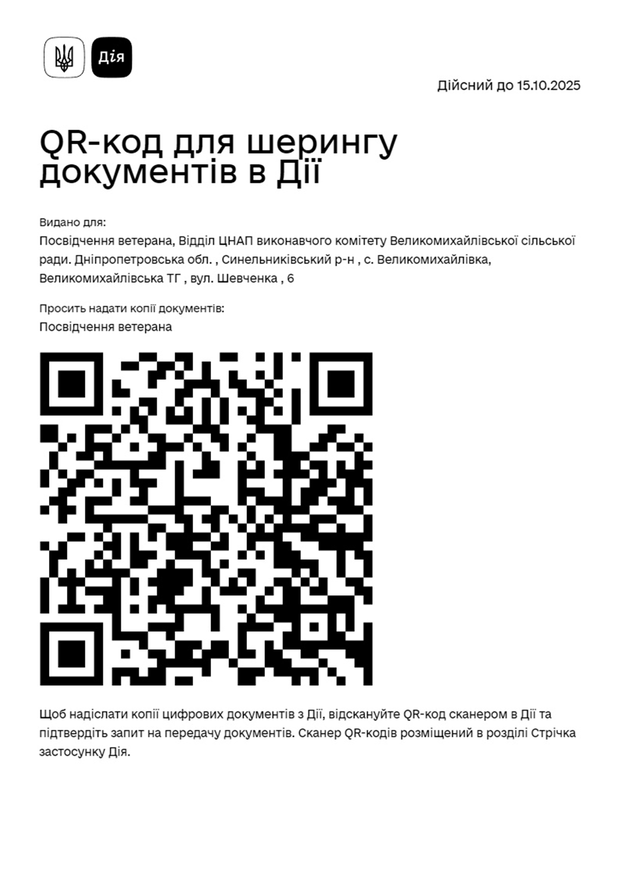 QR-код для шерінгу документів в ДІЇ
