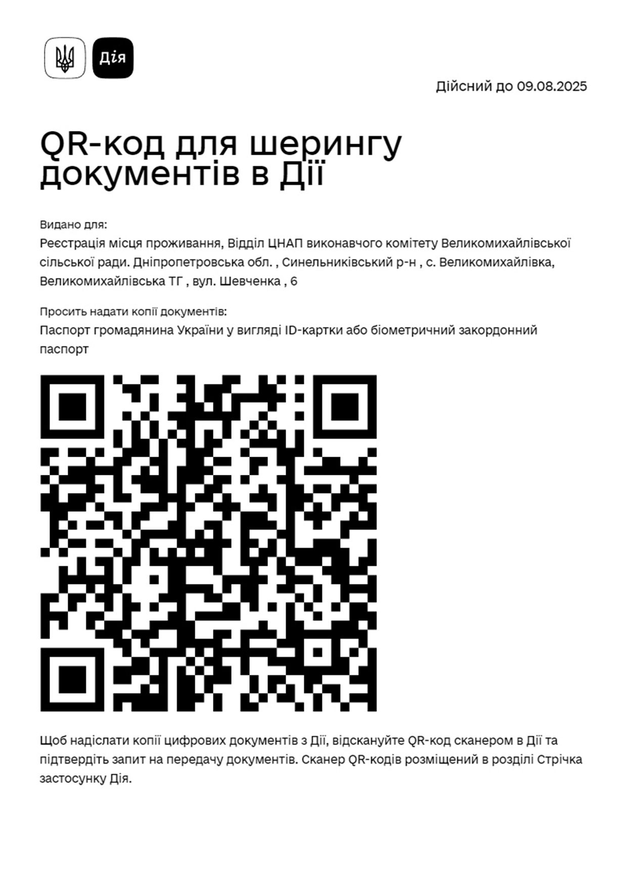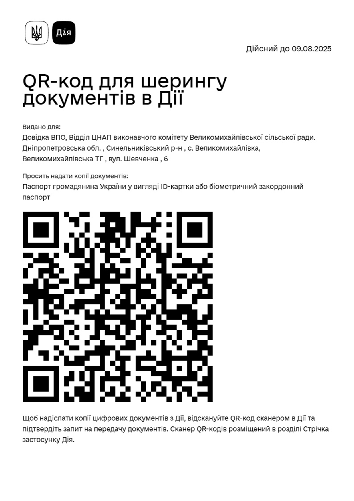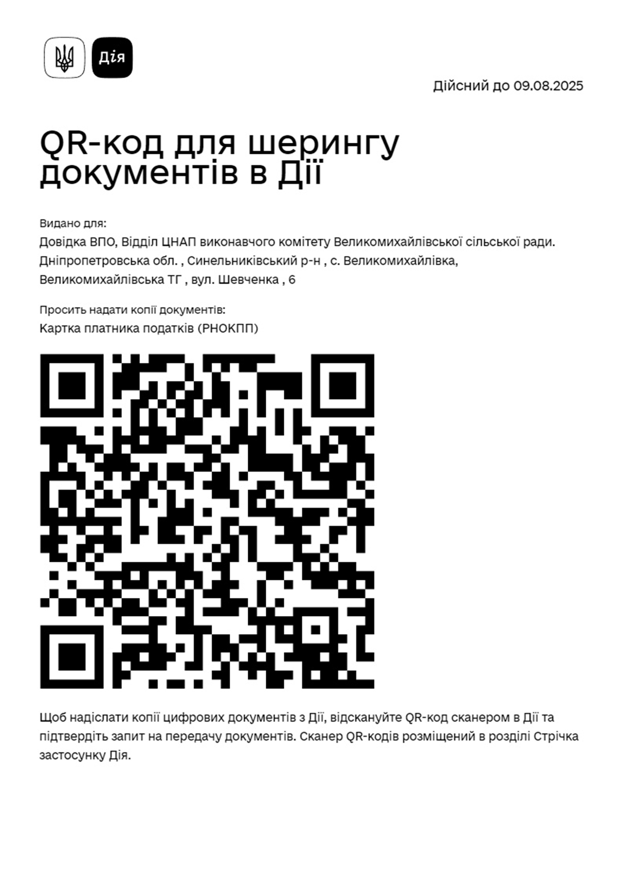 QR-код для шерінгу документів в ДІЇ