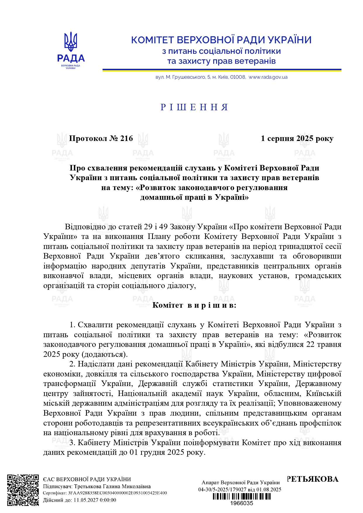 Рішення Комітету Верховної Ради України з питань соціальної політики та захисту прав ветеранів