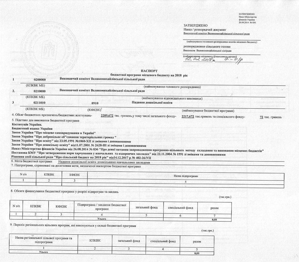 «Паспорти бюджетних програм 2018 р.»