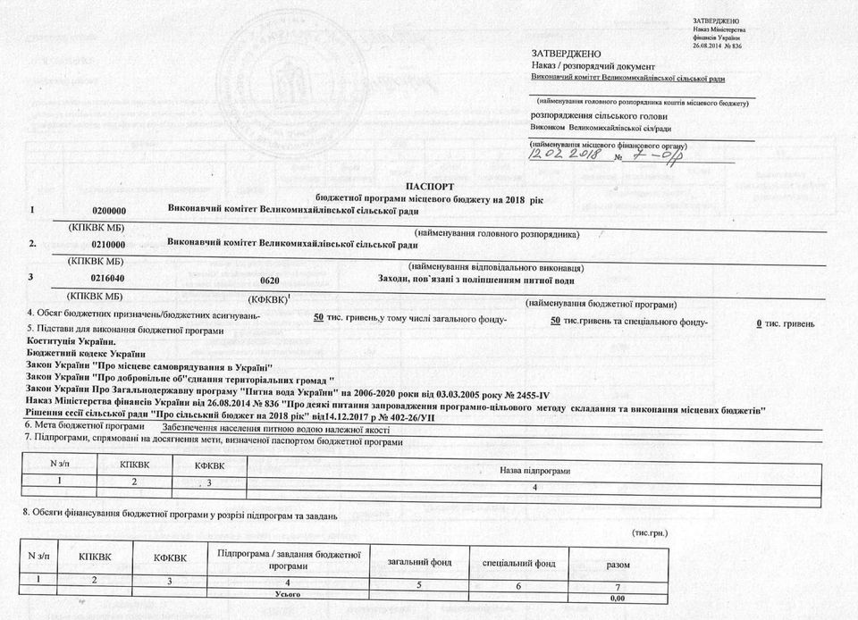 «Паспорти бюджетних програм 2018 р.»