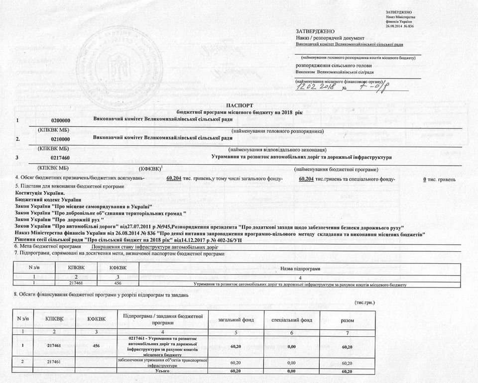 «Паспорти бюджетних програм 2018 р.»