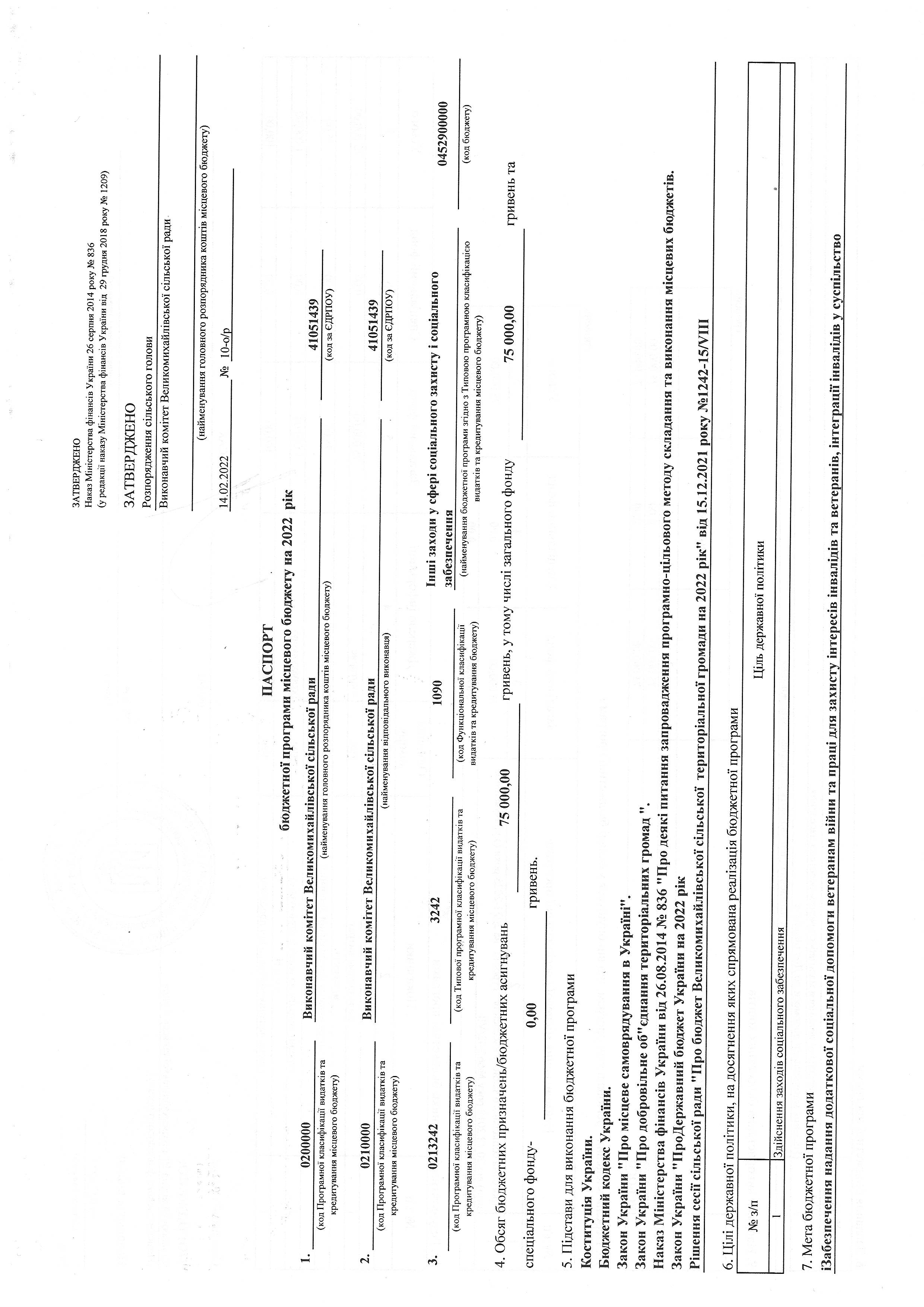 «Паспорти бюджетних програм 2022 р.»
