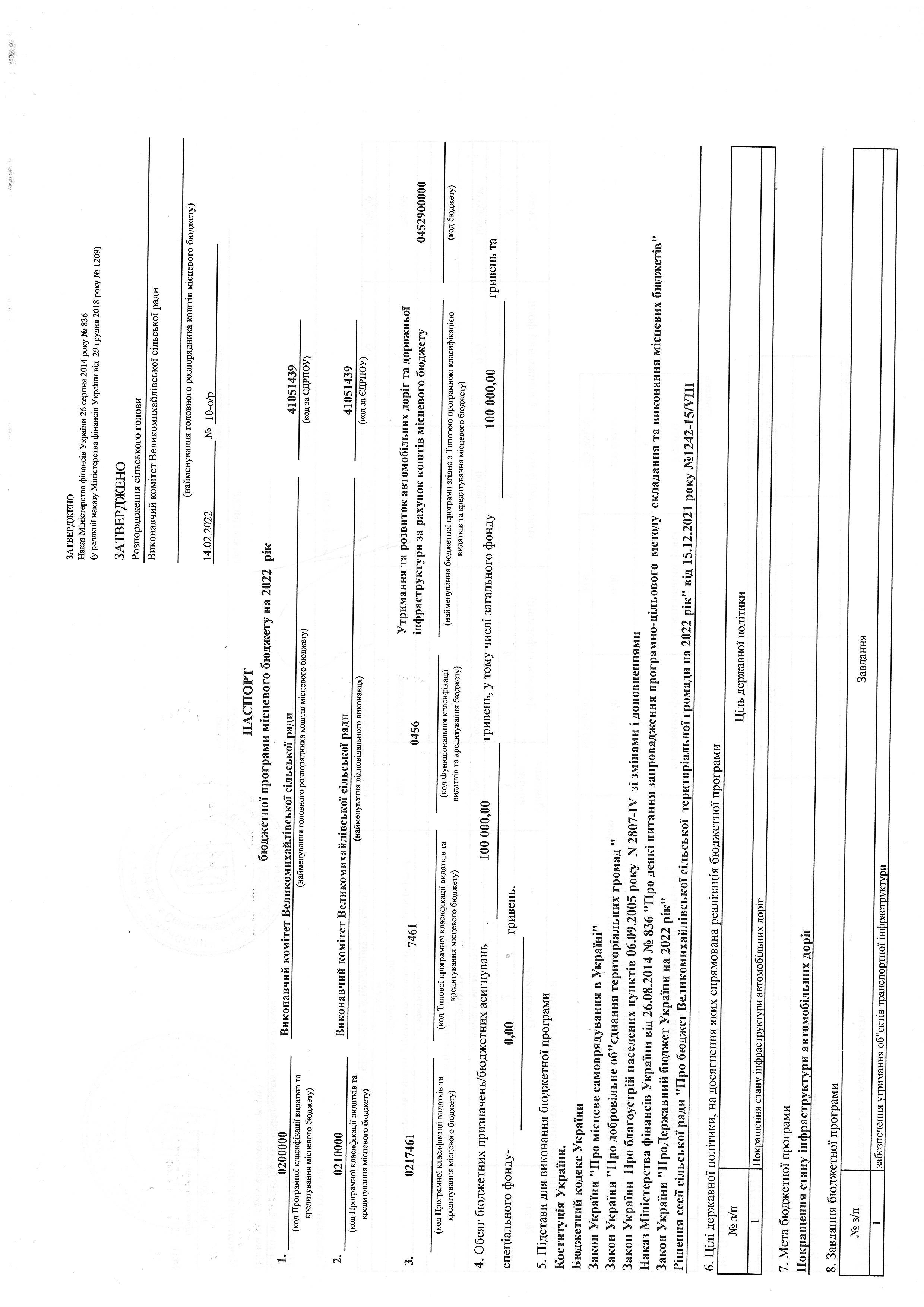«Паспорти бюджетних програм 2022 р.»